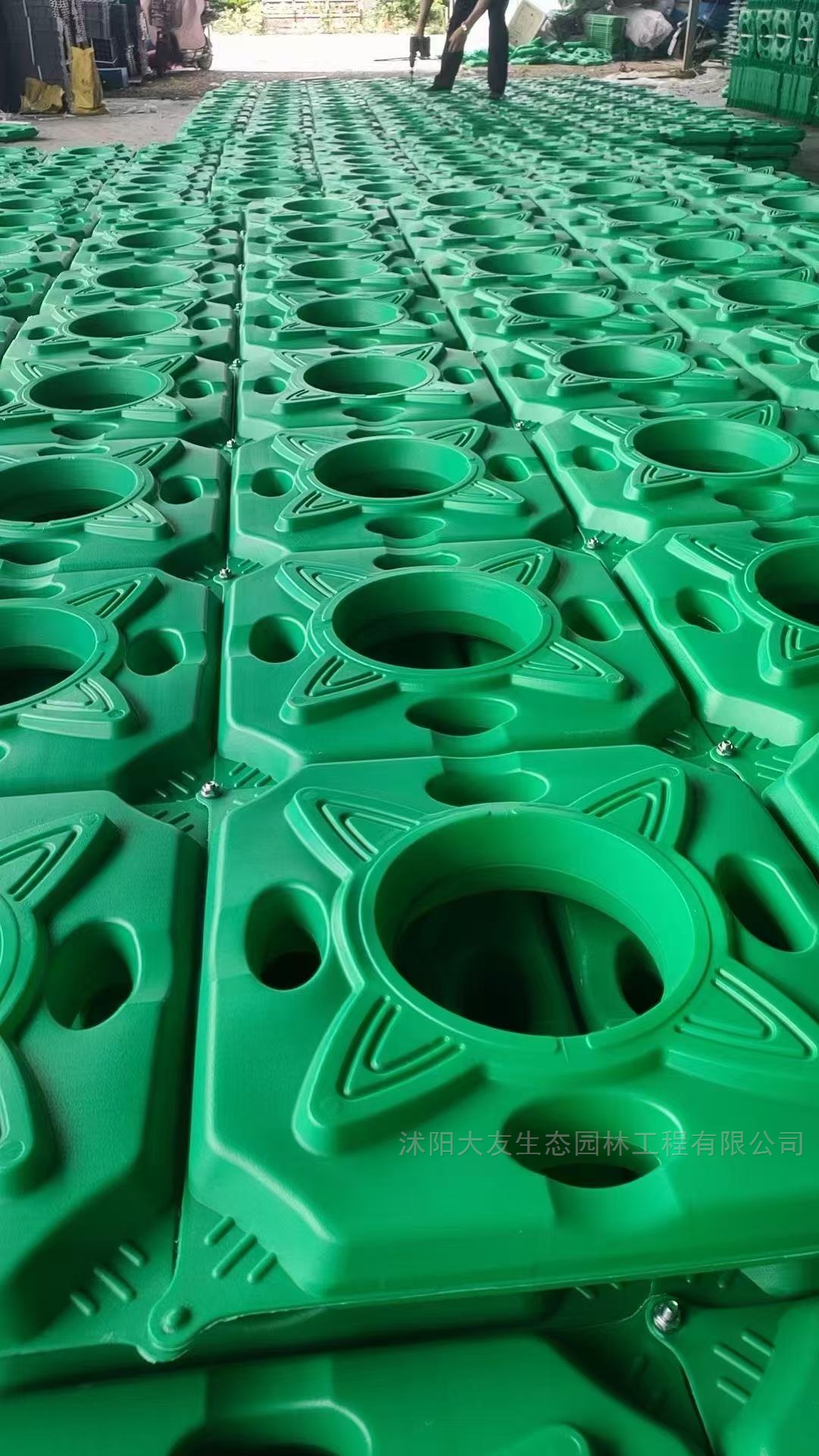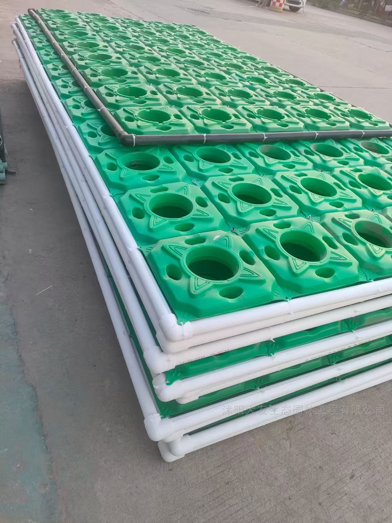 HDPE人工浮岛采用标准化模块化设计,结构简洁稳固、拼装灵活,核心由HDPE浮体模块、植被种植系统、固定锚固系统、辅助净化系统四大模块构成,各模块协同发力,兼顾实用性、生态性与便捷性。核心的HDPE浮体模块,采用含量≥95%的高密度聚乙烯(HDPE)原料,通过吹塑或滚塑工艺一次成型,部分产品新增抗氧化与抗紫外线(UV)稳定剂,重量轻、浮力强劲,单平米承载能力可达350公斤,同时具备耐腐蚀性,可耐受酸碱、海水、油渍侵蚀,无任何有害副产物,不会对水体与水生生物造成二次污染,契合“生态优先"的治理理念;浮体模块规格多样,常规有33cm×33cm正方形、50cm×100cm长方形、直径33cm圆形等,每平米可根据规格搭配2-9块浮体,种植穴直径14-16cm,可灵活适配不同种植密度需求。